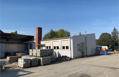 Heruntergekommene, leerstehende Lagerhalle mit angeschlossenem Wohnraum