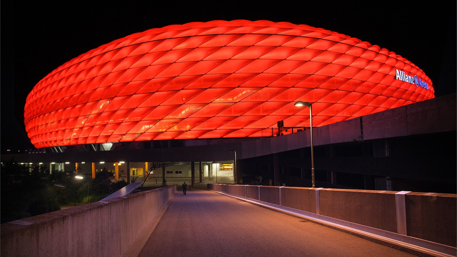 Die im Jahre 2005 eröffnete und bis zu 75.000 Besucher fassende Allianz Arena, die Heimstätte des FC Bayern München, ist als reine Fußball-Arena mit offenem Dach konzipiert worden. Das Stadion verfügt über 29.000 Quadratmeter beleuchtete Außenhülle, die sich gezielt und in Echtzeit ansteuern lässt. Auf dem weitläufigen Areal der Arena befinden sich auch eine Polizeistation, Erste Hilfe Areal, mehrere Parkhäuser etc.
