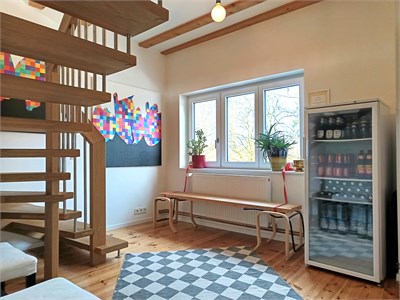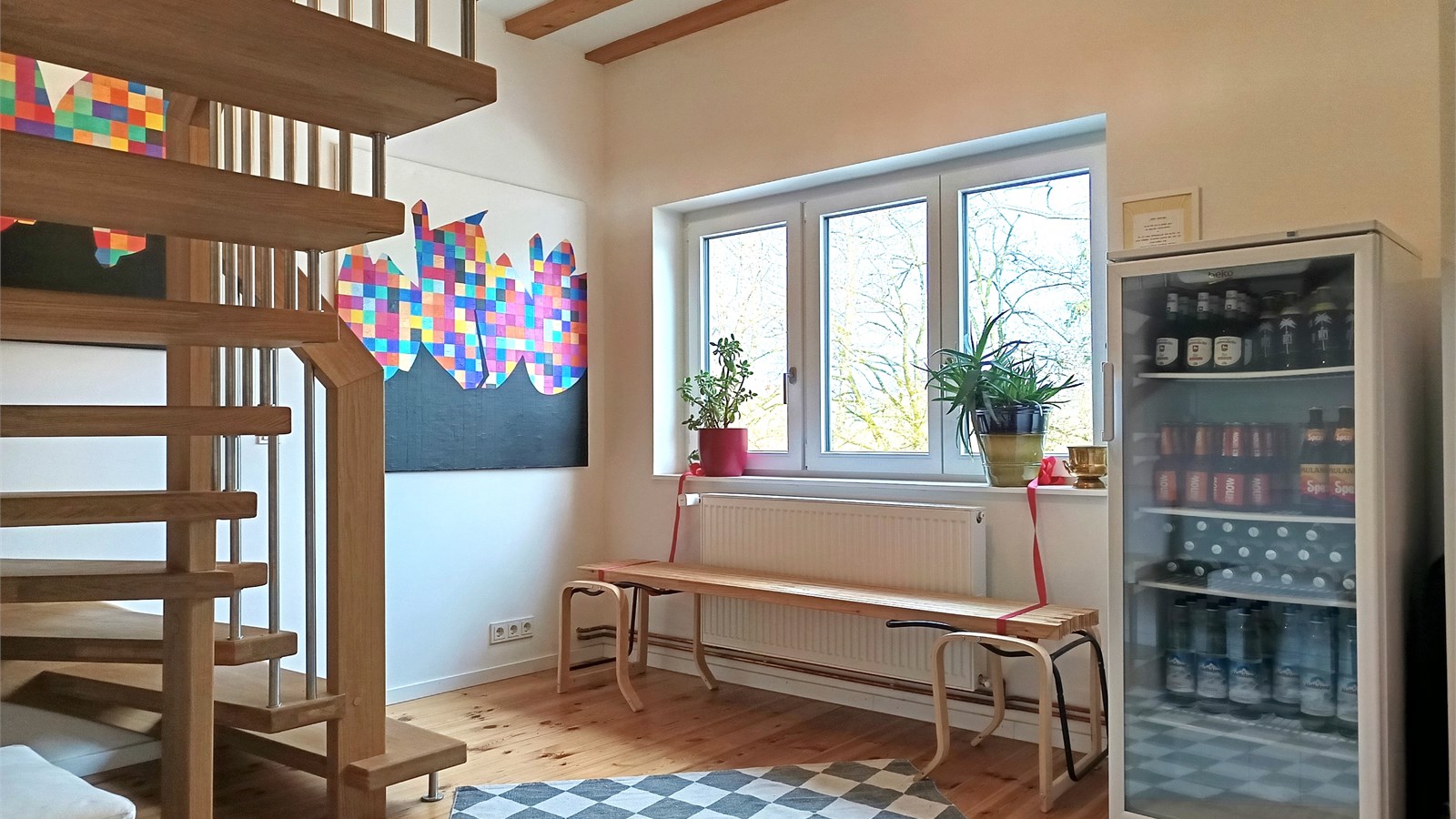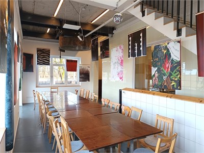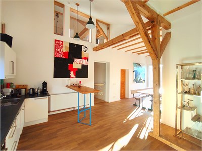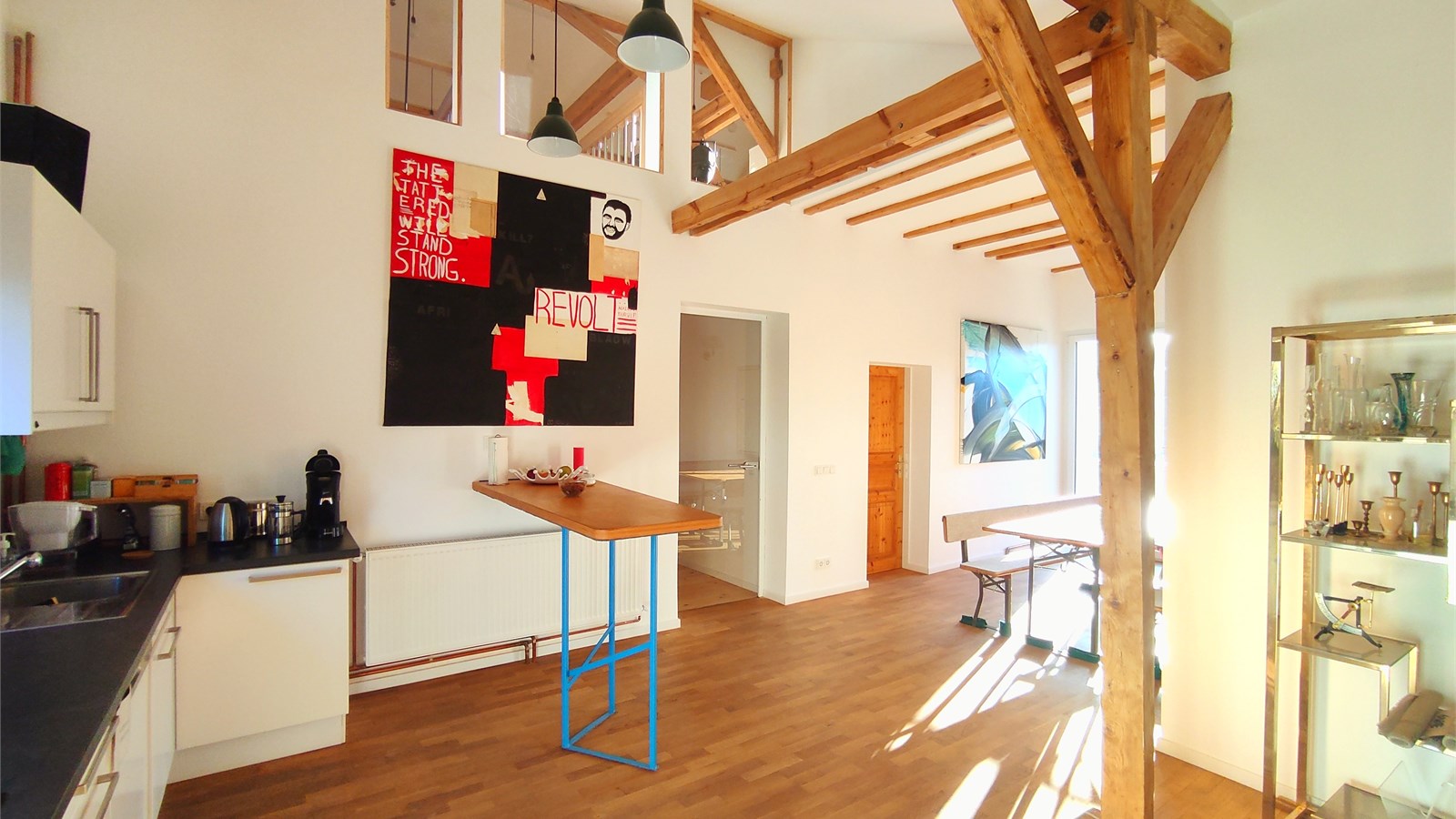 Alte pharmazeutische 650qm Fabrik, die zum Künstler- und Eventhaus renoviert wurde. Gehoben, wohnlich, Industriechic, alternativ, Fabrik, Bar, Glasterrasse, ländlich Baujahr 1950/1970