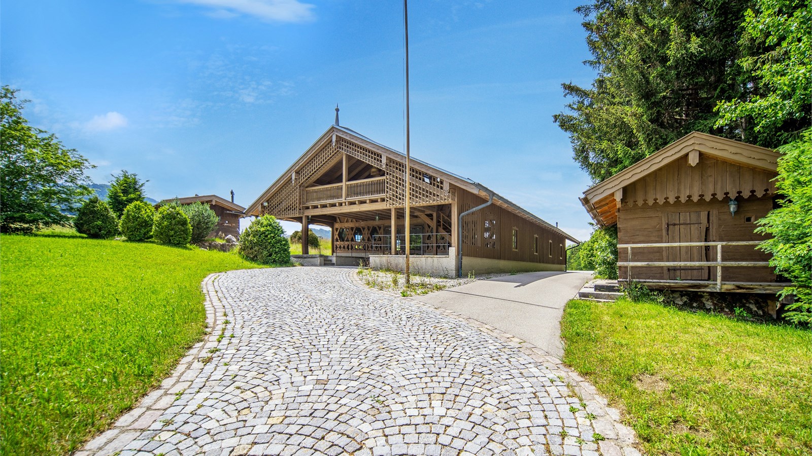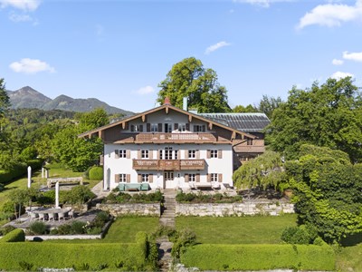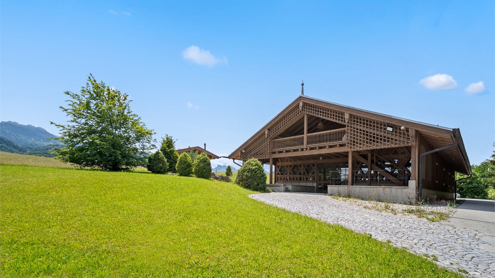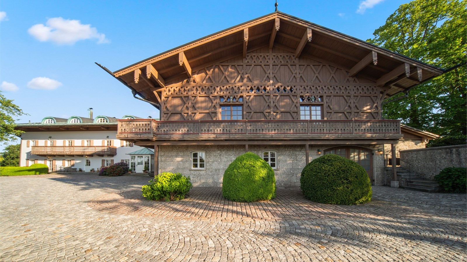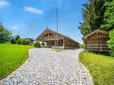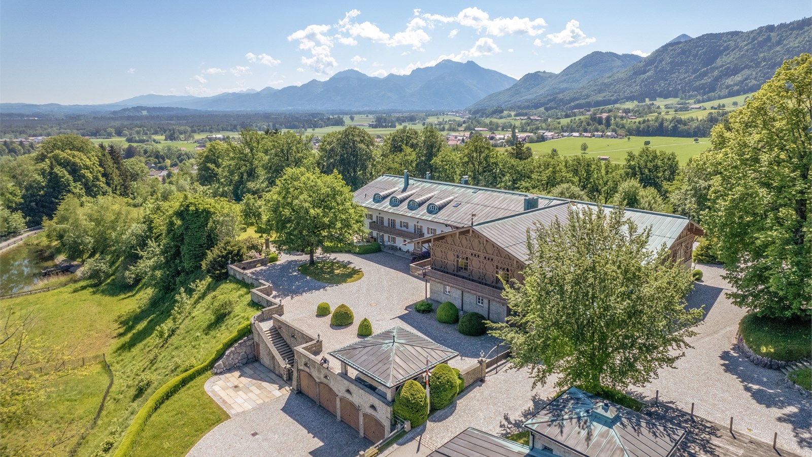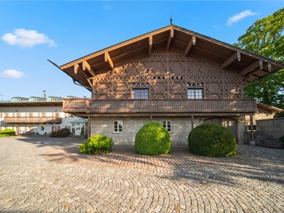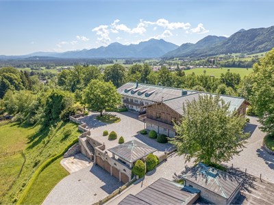 Herrschaftliches Anwesen auf einem weitläufigen Hochplateau, das eine atemberaubende Weitblicklage über den gesamten Chiemgau bietet. Im Osten reicht der Fernblick bis zum Chiemsee, während sich im Süden und Westen ein unvergleichliches 180-Grad-Panorama der majestätischen Chiemgauer Alpen entfaltet. Direkt neben dem stilvollen und für höchste Ansprüche ausgestatteten Gutshof befindet sich die weitläufige Tenne. Diese erstreckt sich über zwei Ebenen und wird von einer fantastisch geschwungenen, stählernen Wendeltreppe elegant verbunden. Auf dem 14ha großen Areal befinden sich mehrere Nebengebäude: Glaspavillon, Blockhäuser, Garagen, Stadel. Gutshof, Anwesen, Chiemsee, Bergpanorama, Alpen, Ausstellungsfläche, Parkgrundstück, Terrasse, Ausstellungfläche Steht nicht für Einzeldrehtage zur Verfügung. Motivmiete entsprechend dem hohen Standard.