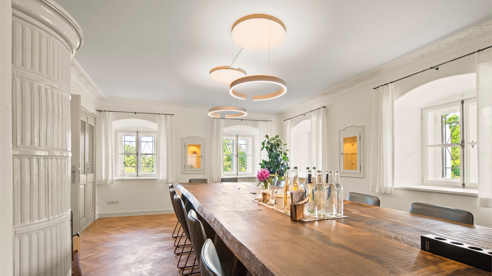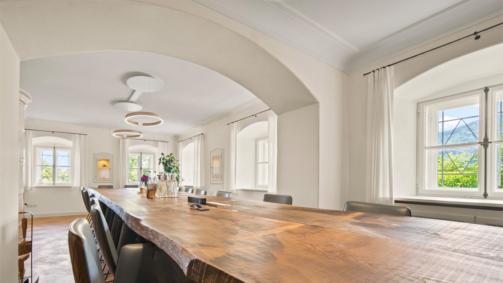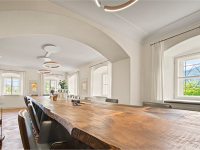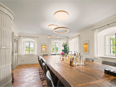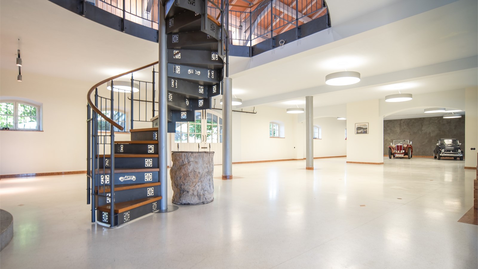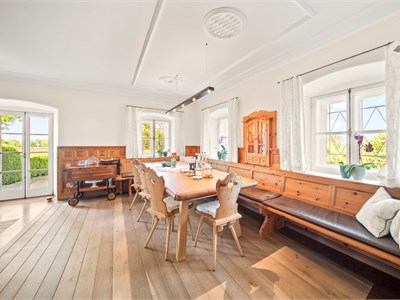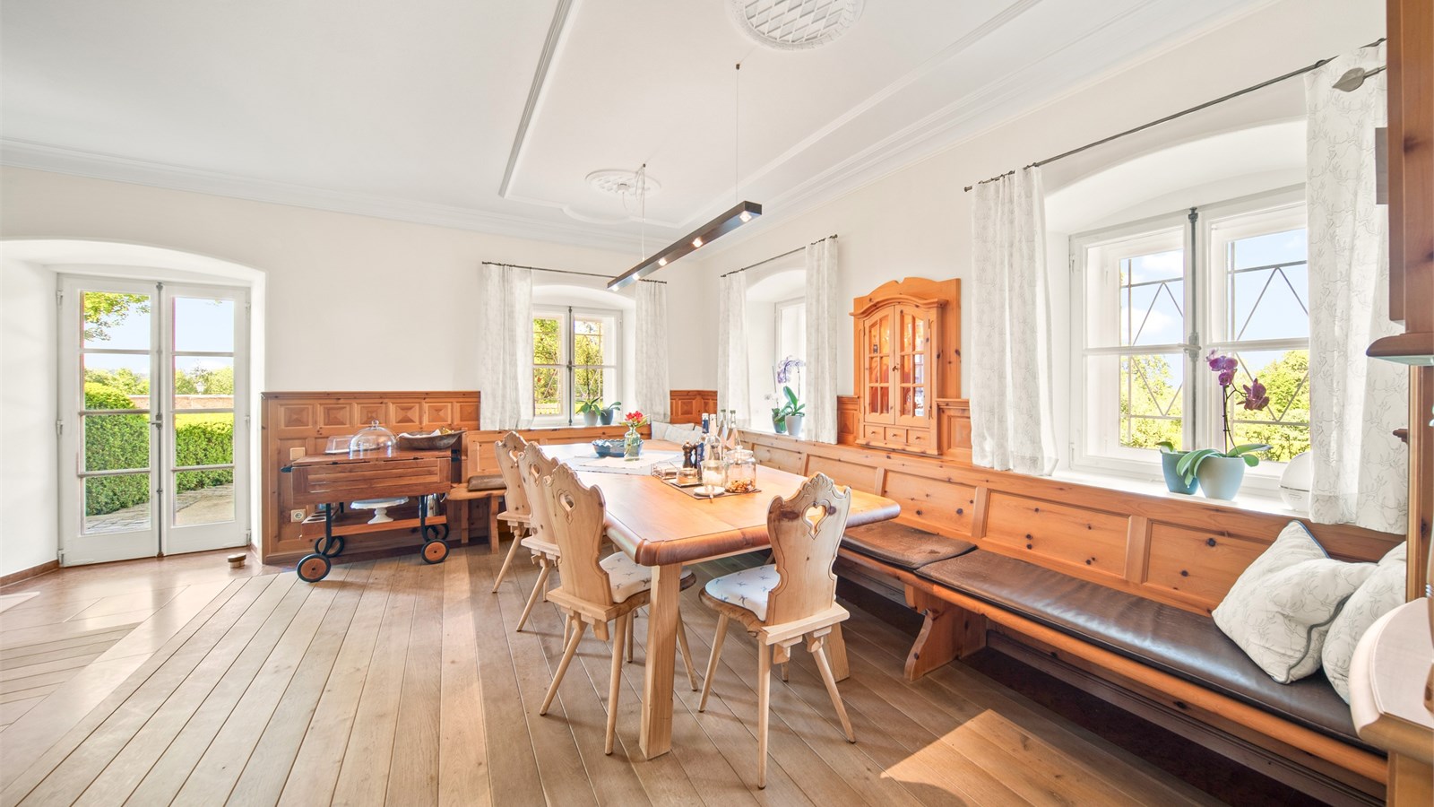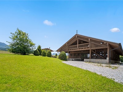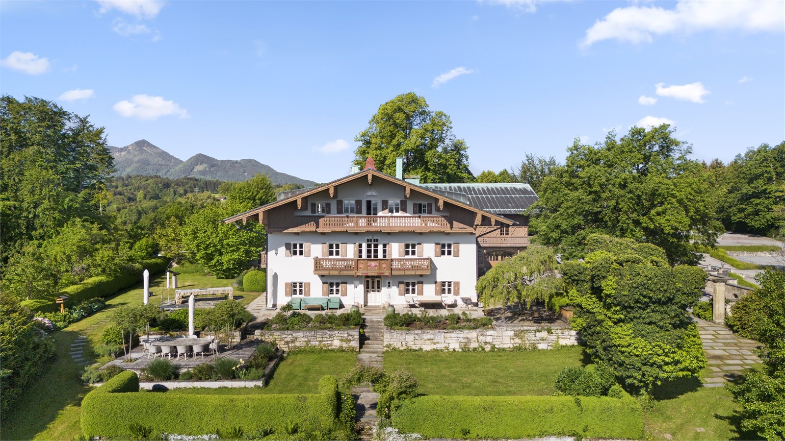 Herrschaftliches Anwesen auf einem weitläufigen Hochplateau, das eine atemberaubende Weitblicklage über den gesamten Chiemgau bietet. Im Osten reicht der Fernblick bis zum Chiemsee, während sich im Süden und Westen ein unvergleichliches 180-Grad-Panorama der majestätischen Chiemgauer Alpen entfaltet. Direkt neben dem stilvollen und für höchste Ansprüche ausgestatteten Gutshof befindet sich die weitläufige Tenne. Diese erstreckt sich über zwei Ebenen und wird von einer fantastisch geschwungenen, stählernen Wendeltreppe elegant verbunden. Auf dem 14ha großen Areal befinden sich mehrere Nebengebäude: Glaspavillon, Blockhäuser, Garagen, Stadel. Gutshof, Anwesen, Chiemsee, Bergpanorama, Alpen, Ausstellungsfläche, Parkgrundstück, Terrasse, Ausstellungfläche Steht nicht für Einzeldrehtage zur Verfügung. Motivmiete entsprechend dem hohen Standard.