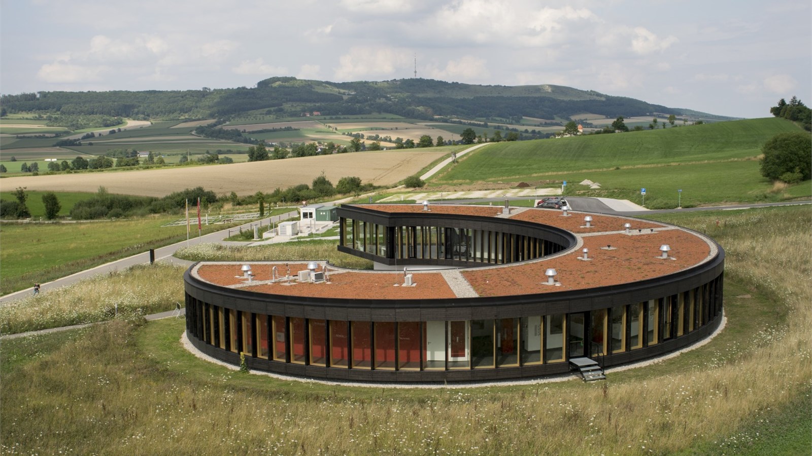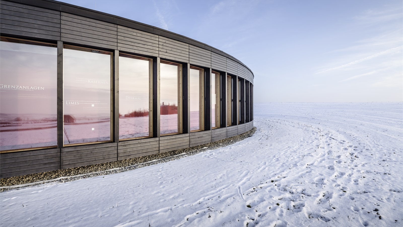 Das LIMESEUM ist ein Museum über das Kastell Ruffenhofen und den raetischen Limesabschnitt (Teil des UNESCO-Welterbes Obergermanisch-Raetischer Limes) in der Hesselberg-Region. Das Gebäude ist mit seiner runden Architektur, bestehend aus viel Holz und Glas, ein Blickfang in der umliegenden, von Natur und dem Blick auf den Hesselberg geprägten Landschaft. Der Römerpark bietet mit dem in Bepflanzung angelegten Kastell, aber auch vielen renaturierten Flächen ebenfalls schöne Motive. 2012 / Zeitgenössische Architektur; Mittelfranken