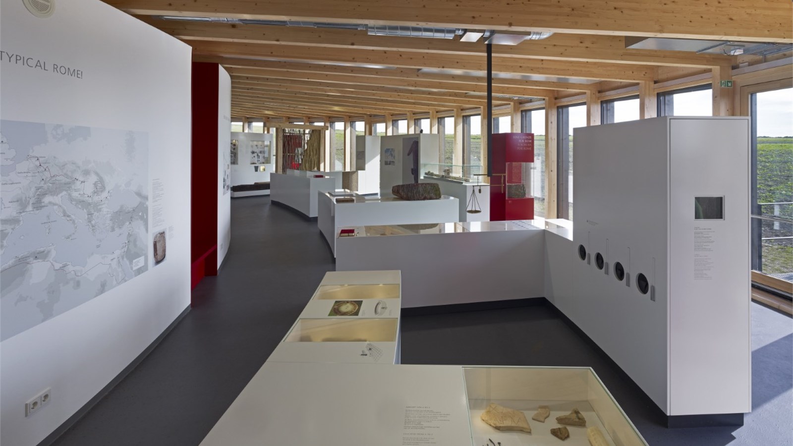 LIMESEUM: 1.000 m²; Römerpark: 42 Hektar; Parkmöglichkeiten: Museumsparkplatz direkt neben dem LIMESEUM; Zufahrt für LKW: bis zum Gebäude möglich, außerdem Busstellplätze; Wohnmobilstellplatz;