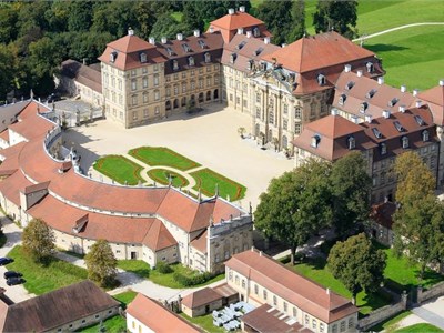 Schloss Weissenstein ist ein Barockschloss in Oberfranken (40 km von Nürnberg), das ohne Kriegsbeschädigungen oder schädliche Umwelteinflüsse original erhalten ist. An das Schloss schließt ein 11 Hektar großer Landschaftspark an. Im Mittelbau befindet sich das doppelläufige, dreistöckige Treppenhaus mit 240 m², sowie der Festsaal mit 250 m² und die märchenhafte Muschelgrotte mit 210 m². Der Ehrenhof mit 4300 m² wird abgerundet vom Marstallgebäude. Darin befindet sich eine prunkvoll ausgestattete Sattelkammer – die ehemaligen Stallungen sind teilweise ausgebaut und können ebenfalls genutzt werden. Die Nebengebäude komplettieren die typisch barocke Anlage. Darunter eine Orangerie und ein Palmenhaus, das bis heute zur Überwinterung der Palmen genutzt wird.