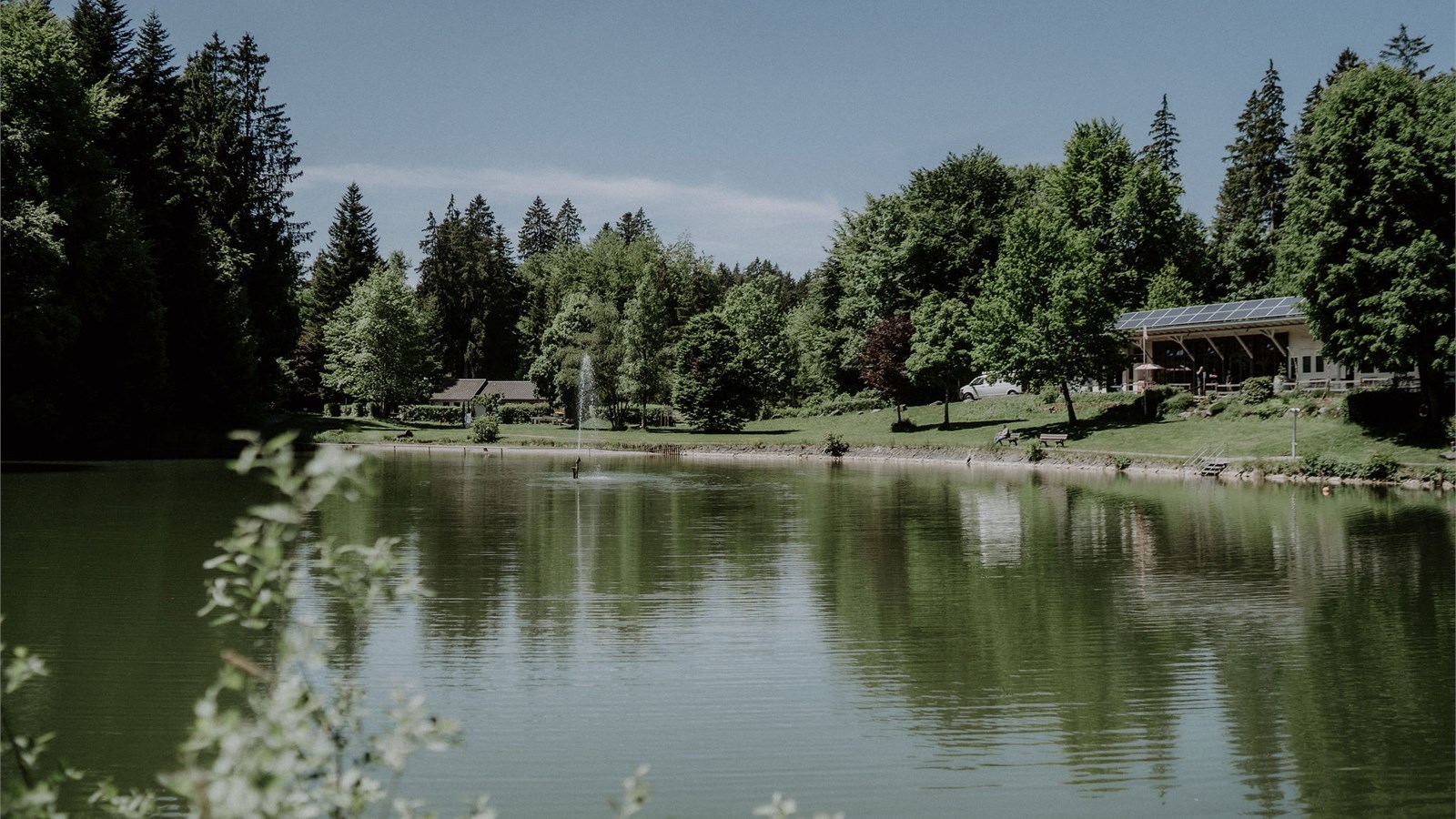 Natursee mit altem Baumbestand, einem kleinen Campingplatz, sowie Unterkünften ((2 Blockhütten, 1 Schlaffass, 2 Schäferwagen, 1 Ferienwohnung), einer Eventlocation (Waldbad Atelier) und einer Jausenstation/Cafe. Camping - See - Lichtung - Glamping - Natur - Badesee -Wald -Camping -Blockhütte -Schlaffass -Gaststätte -Jausenstation -Atelier - Wohnhaus - Rezeption - Waschräume - Küche - Seminarraum - Yogastudio - Eventlocation